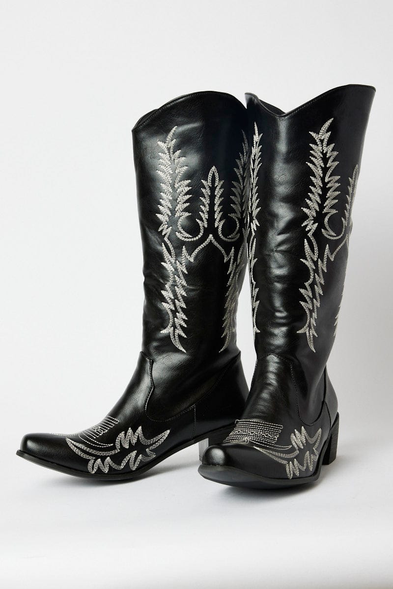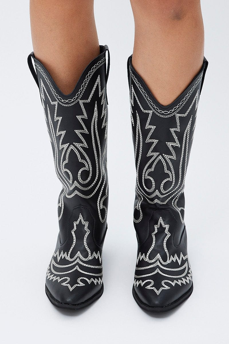 Black Embroidered Cowboy Boots
