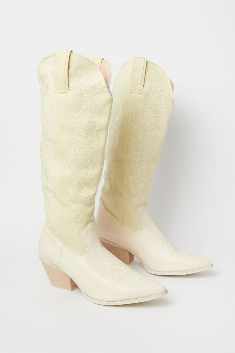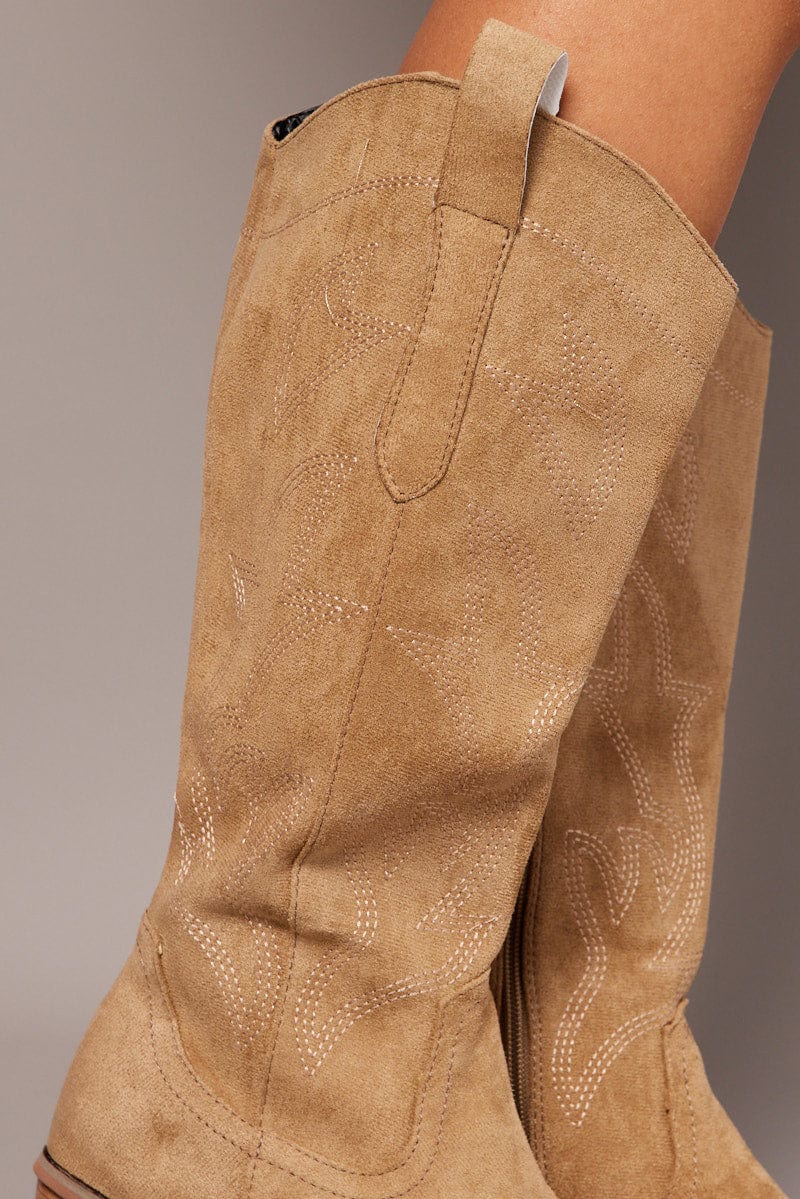 Beige Embroidered Western Boots