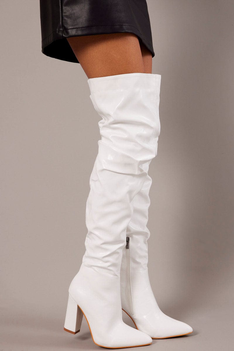 White Heeled Over The Knee Boots