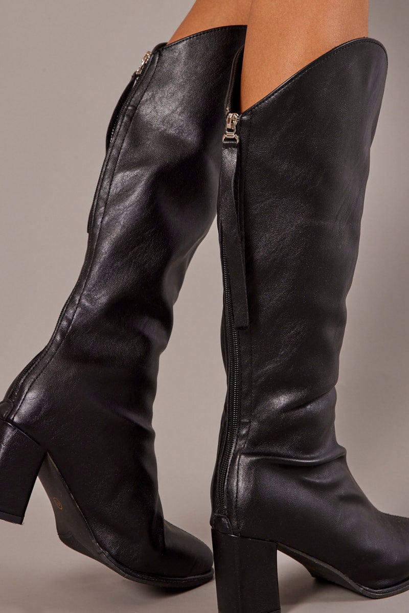 Black Heeled Knee High Boots