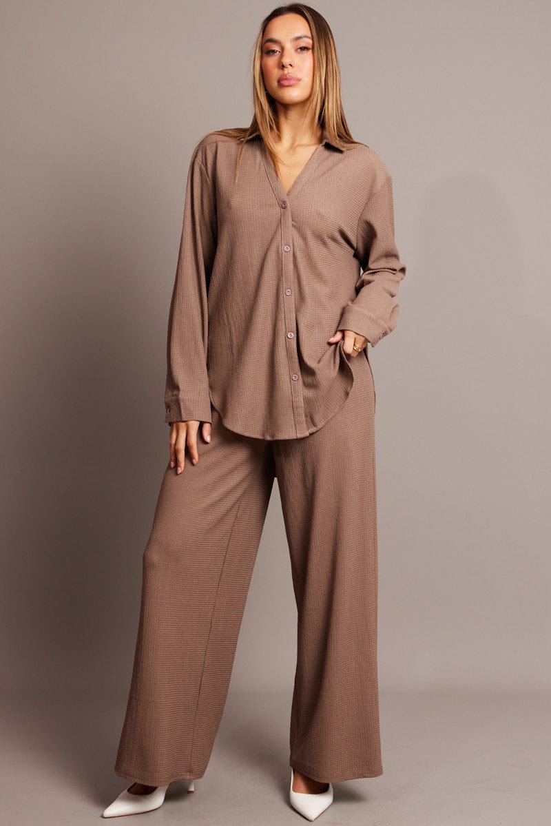 Brown Relaxed Shirt Long Sleeve Textured