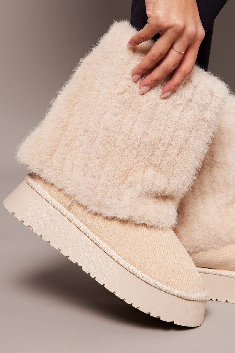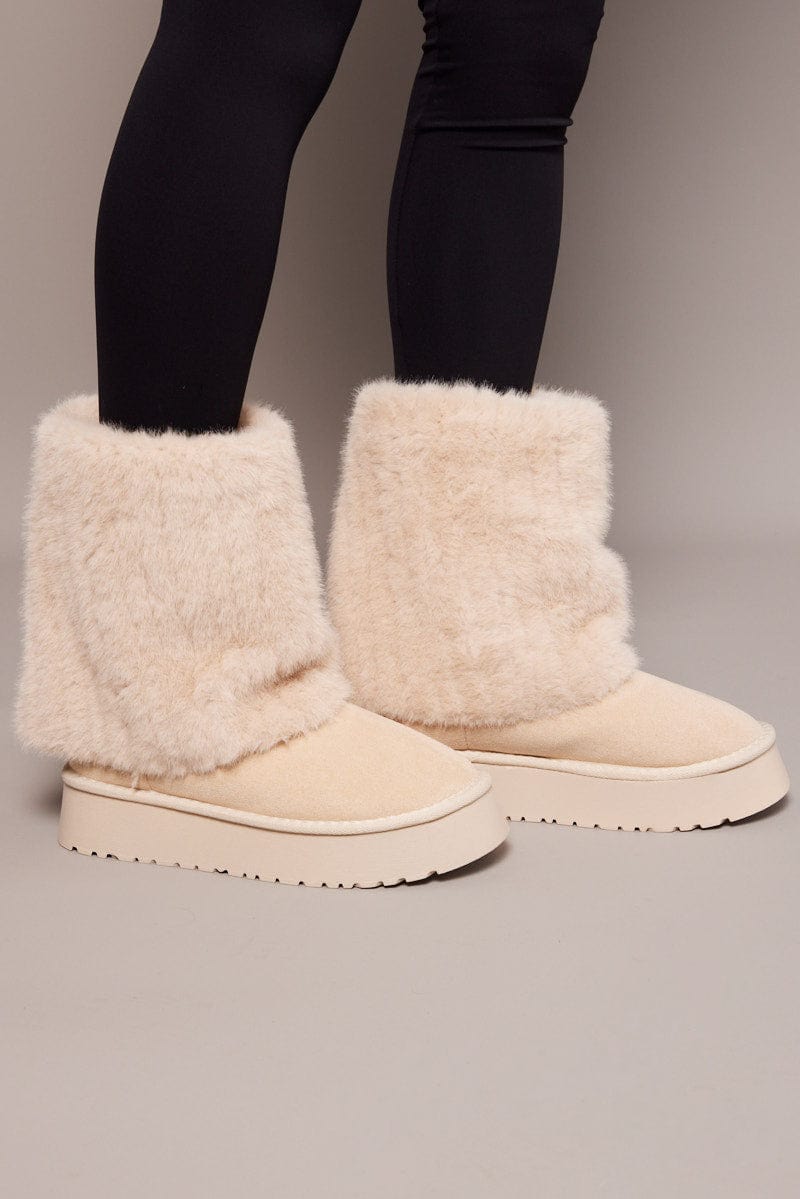 White Faux Fur Snow Boots
