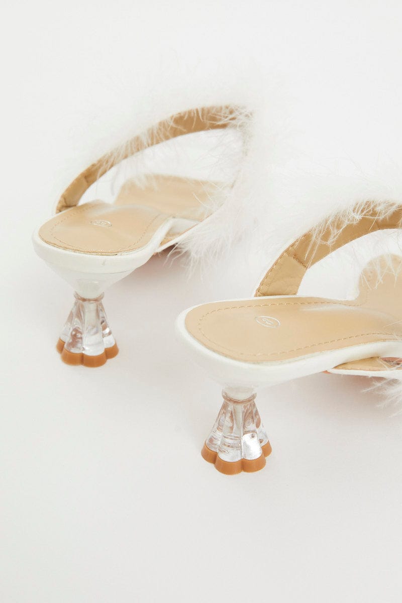 White Faux Fur Strappy Heels